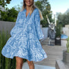 Theodelinda - Korte zomerjurk met print en volantzoom