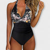 Delphine - Dames badpak met haltertop en contrasterend middelstuk