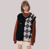 Jazryl - V-hals sweater vest met contrasterend patroon