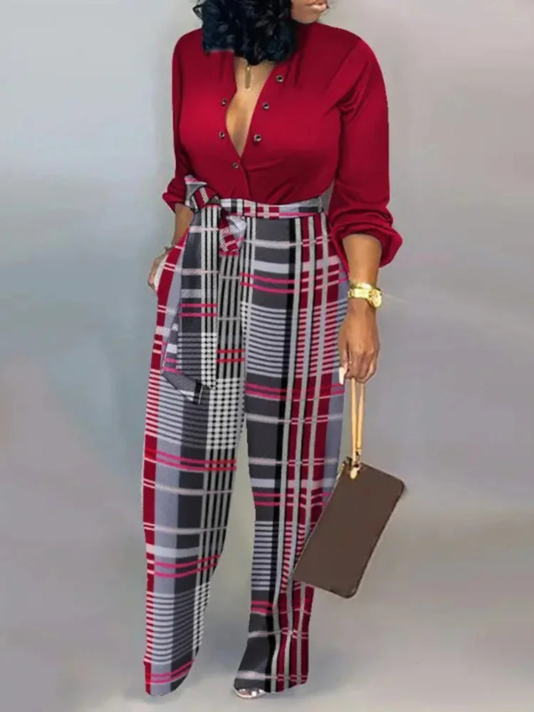 Aessia – Wijde damesjumpsuit met strikceintuur en diepe halslijn