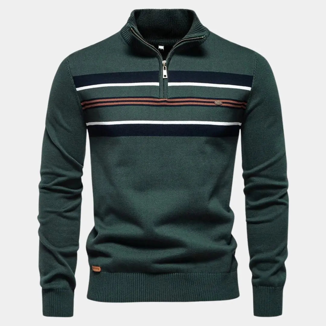 De Corwin gebreide trui is ontworpen voor mannen die een robuuste en veelzijdige look willen combineren met comfort. De half-zip sluiting biedt aanpasbare ventilatie, terwijl de contrasterende strepen een krachtige en dynamische uitstraling geven. De zachte, ademende stof zorgt voor langdurig draagcomfort zonder bewegingsvrijheid te beperken. Perfect om solo te dragen of als extra laag voor een gelaagde en mannelijke stijl.