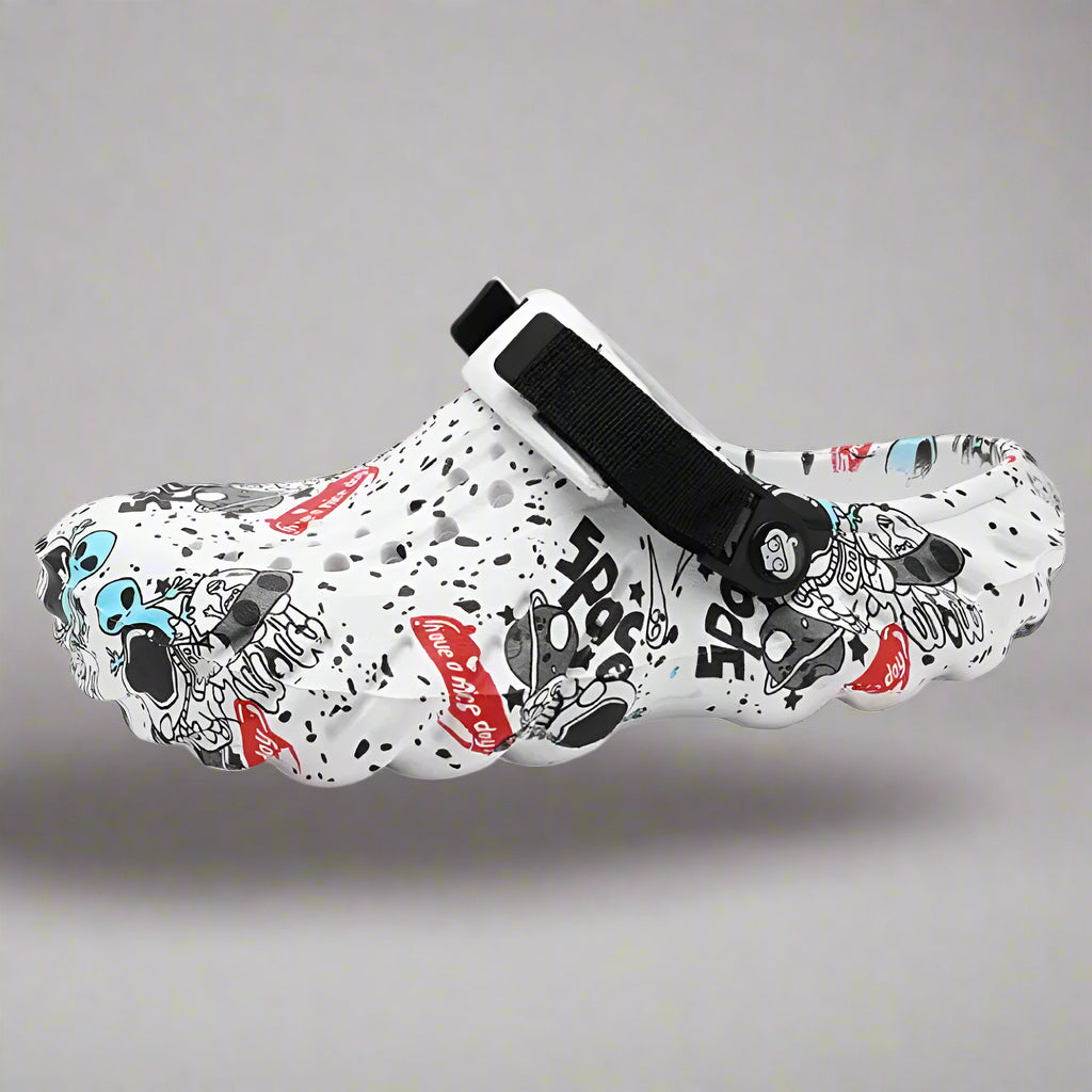 Deze sandaal is ontworpen met een opvallende structuur en sculpturale golven aan de onderkant. De pasvorm sluit zacht aan en beweegt flexibel mee met elke stap. Een verstelbare band aan de hiel zorgt voor een stevige grip zonder druk. Het bovenwerk is luchtig en gestructureerd, met een dynamisch karakter.