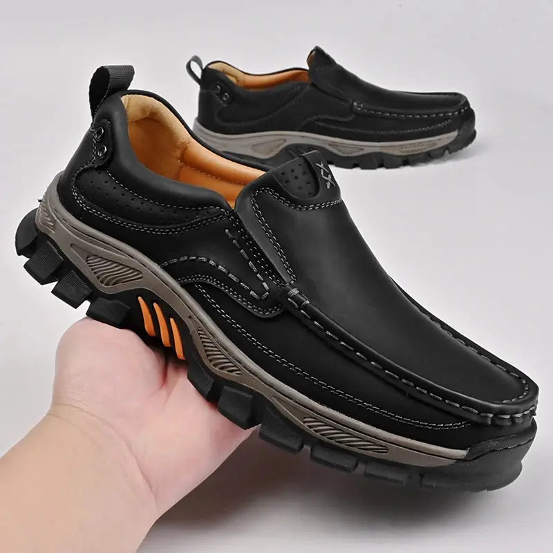 De Emeric instappers zijn ontworpen voor mannen die comfort en robuustheid eisen in hun dagelijkse schoeisel. Het hoogwaardige lederen bovenwerk zorgt voor een stevige pasvorm, terwijl de slip-on constructie moeiteloos gemak biedt. De robuuste zool biedt uitstekende grip en schokabsorptie, perfect voor lange dagen en diverse terreinen. Ideaal voor zowel casual als semi-formele gelegenheden, zonder in te leveren op functionaliteit.