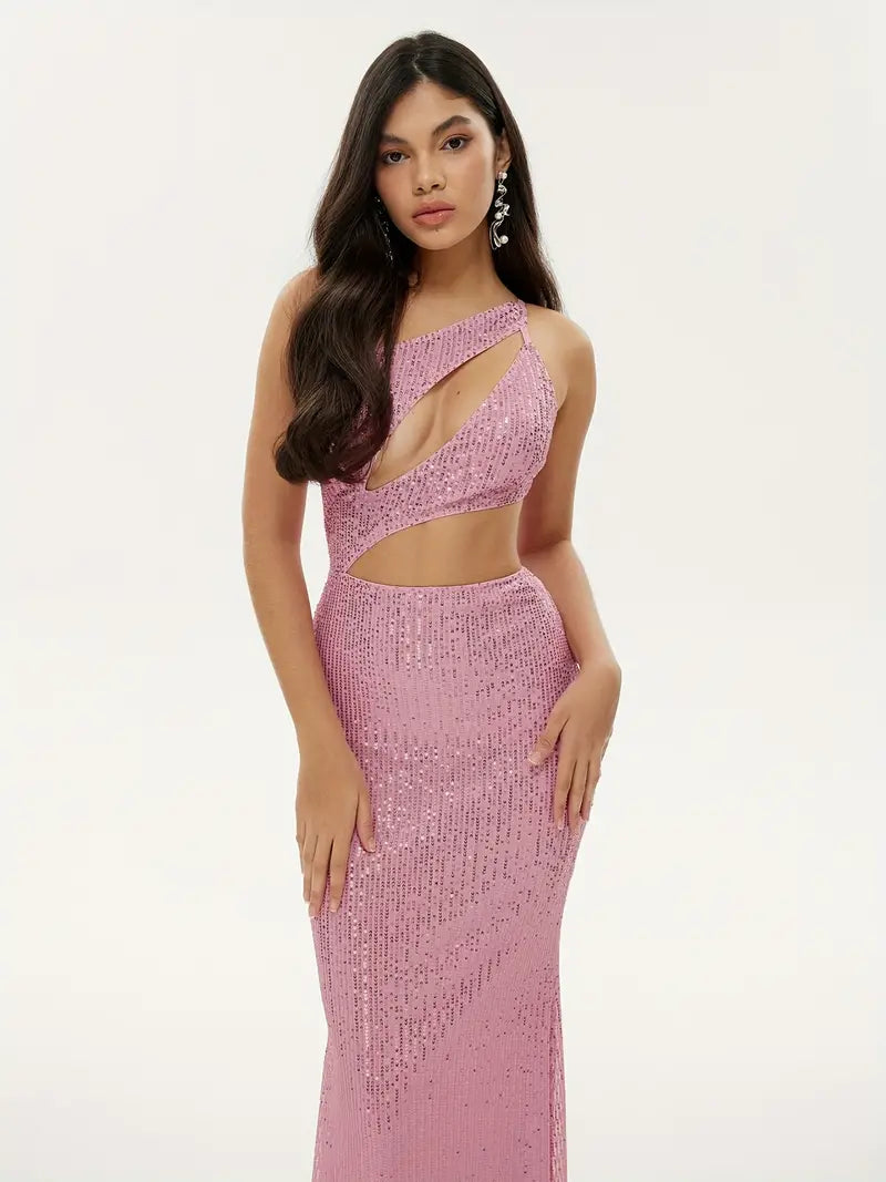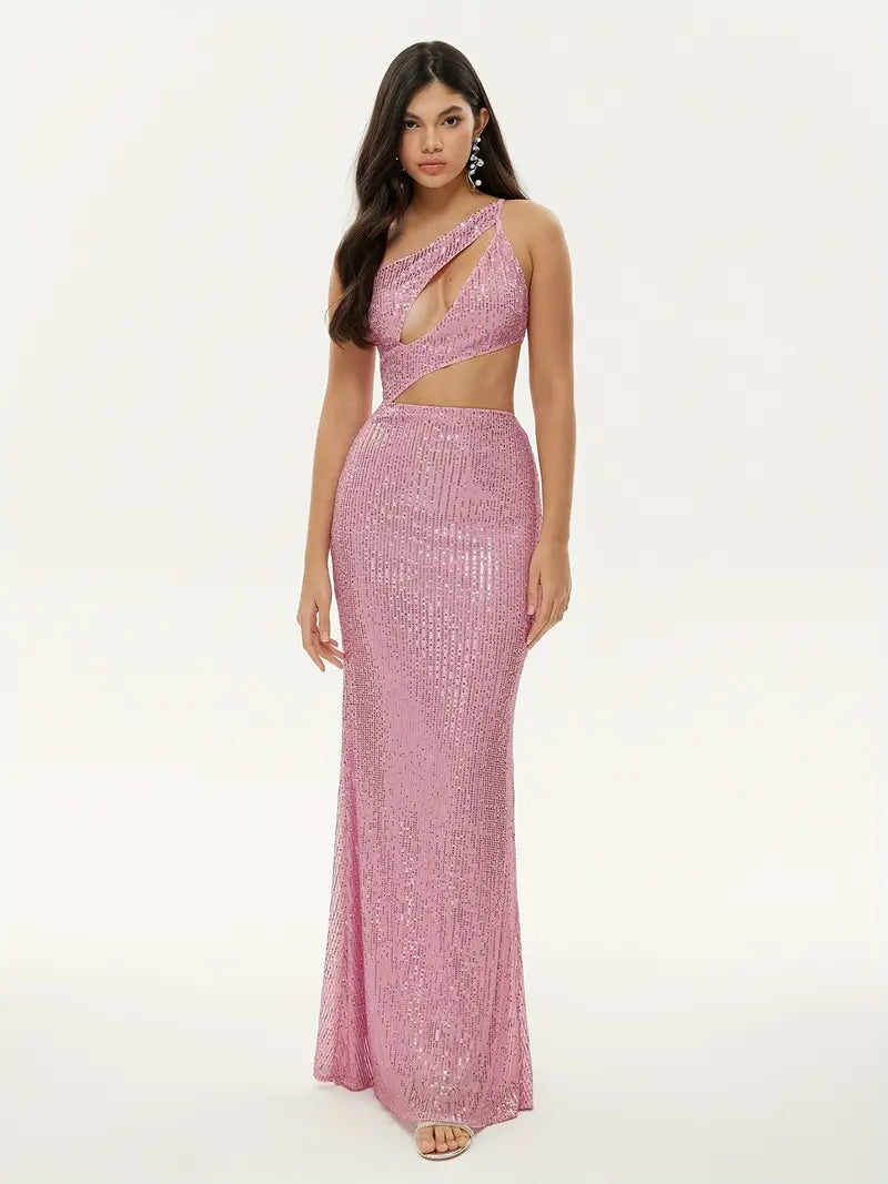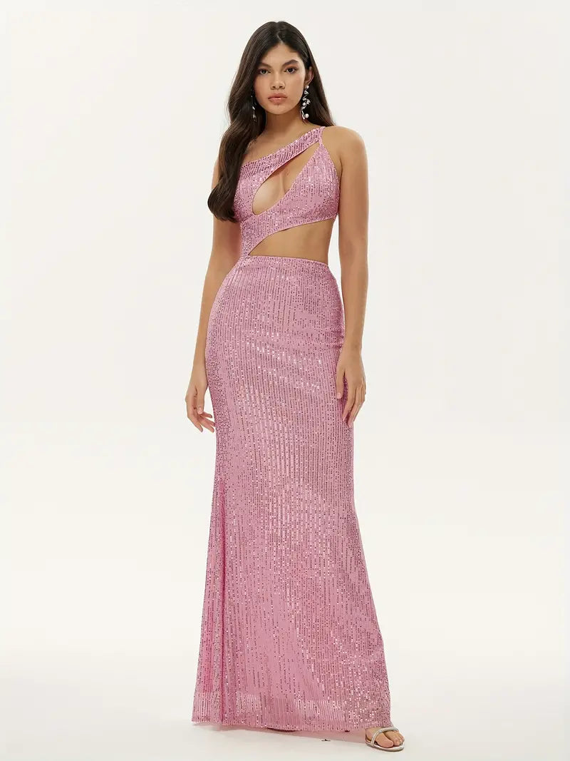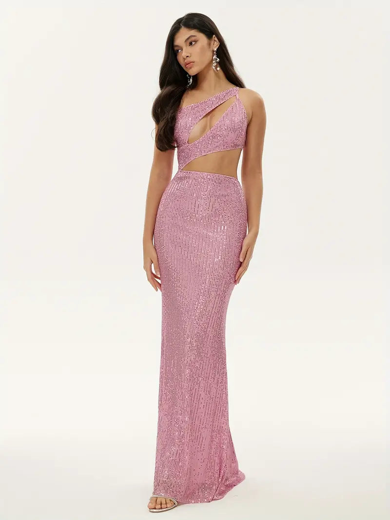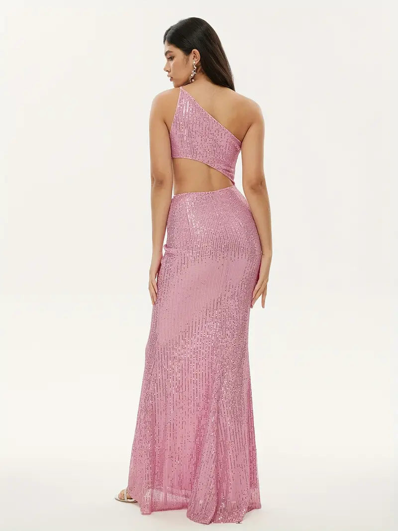 Farida - Eén schouder uitgesneden paillettenjurk sexy décolleté