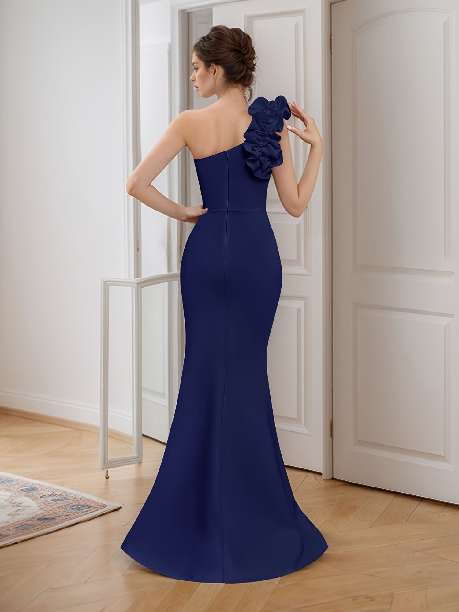 Larina - Damesjurk met één schouder en ruches en hoge split