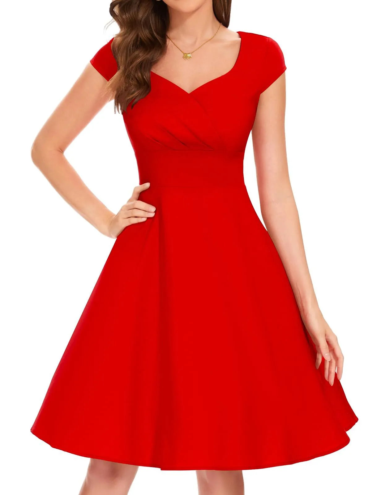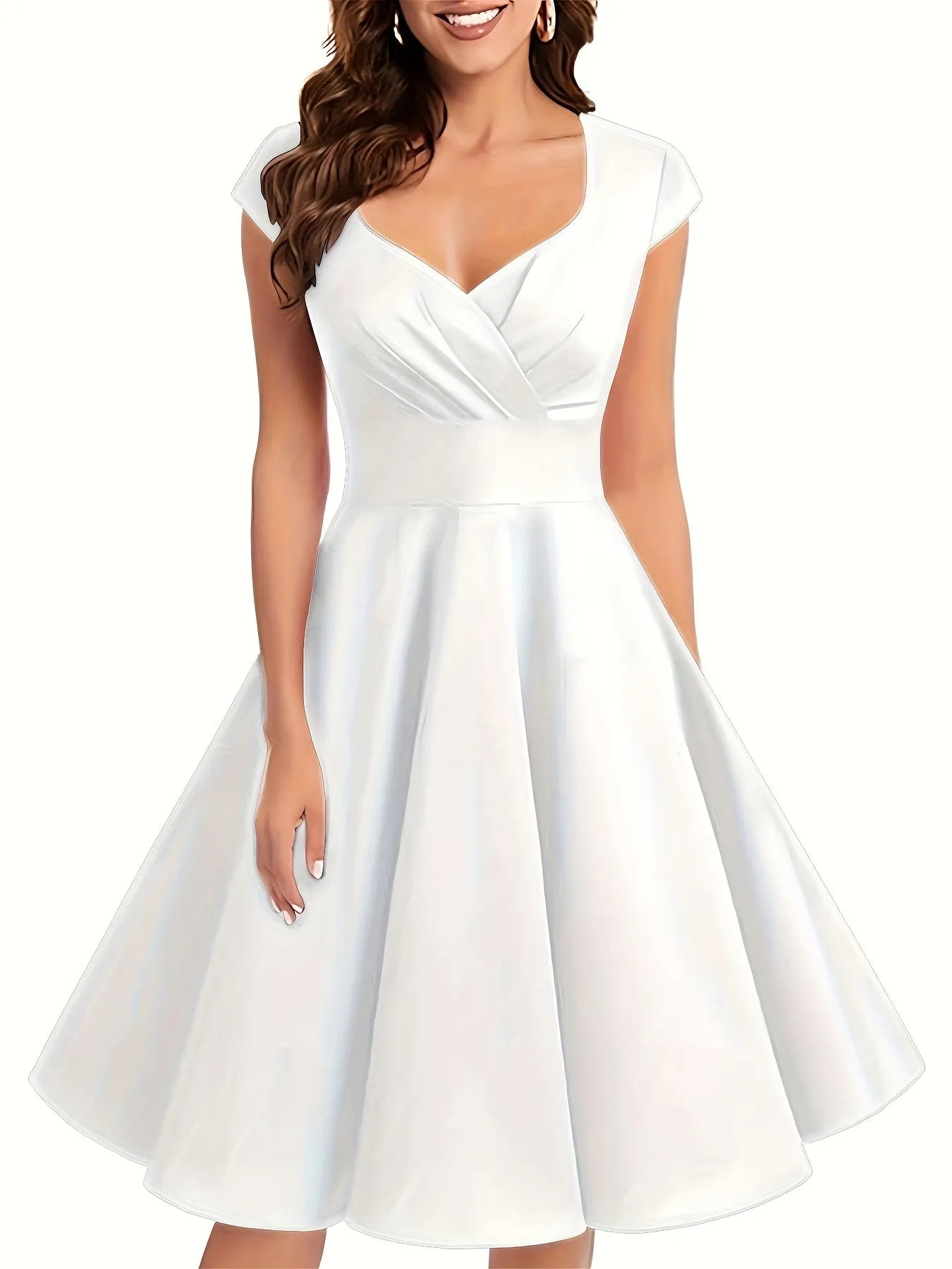 Lenny - Dames fit & flare jurk met kapmouwtjes en hartvormige halslijn