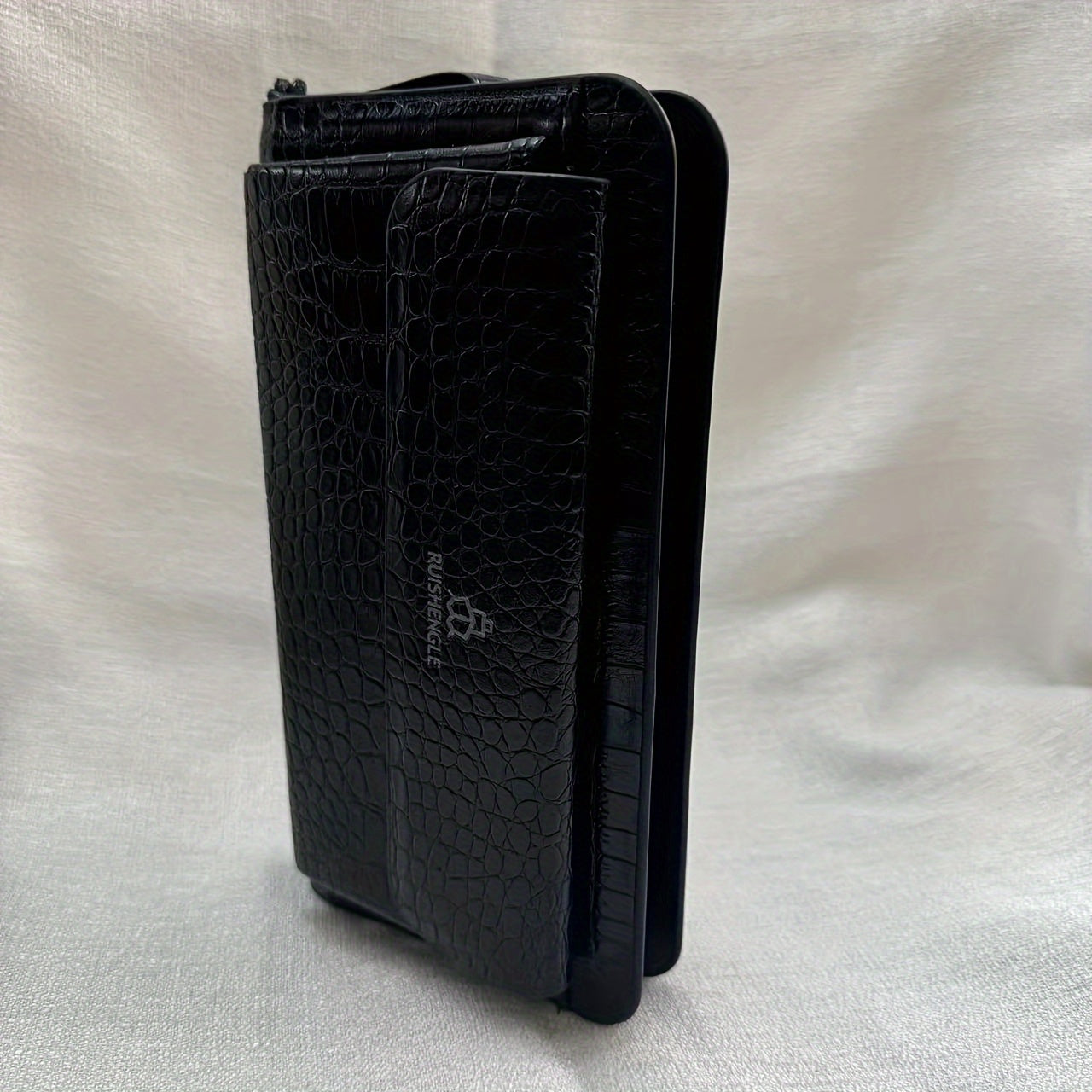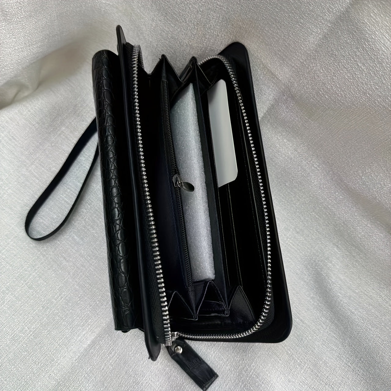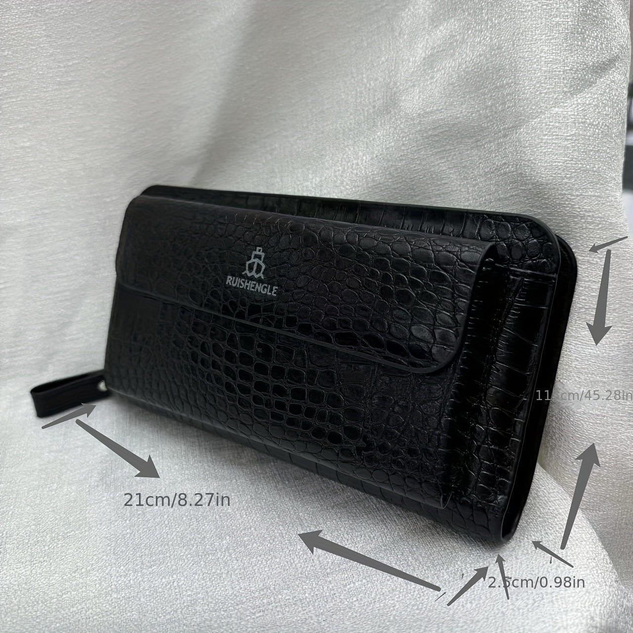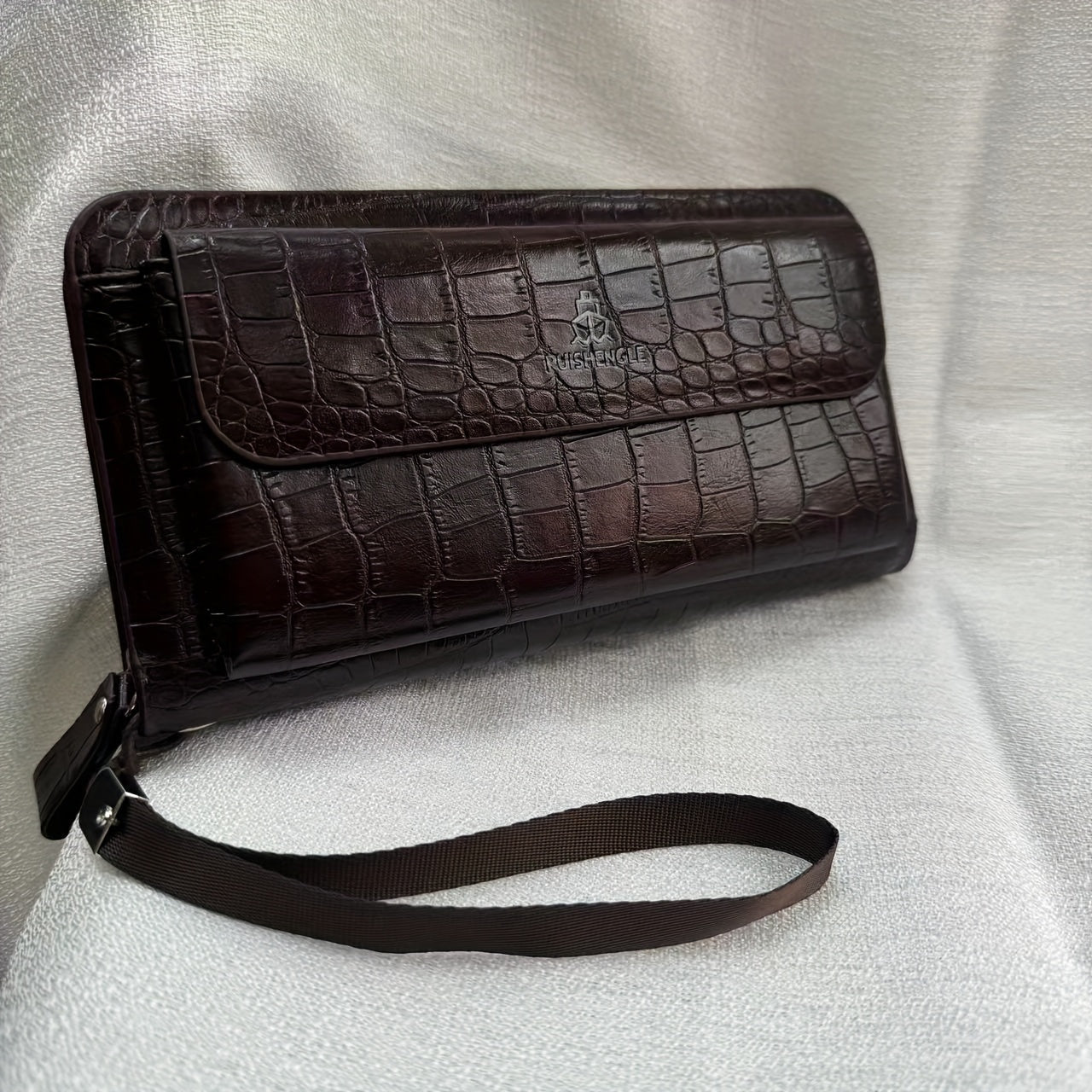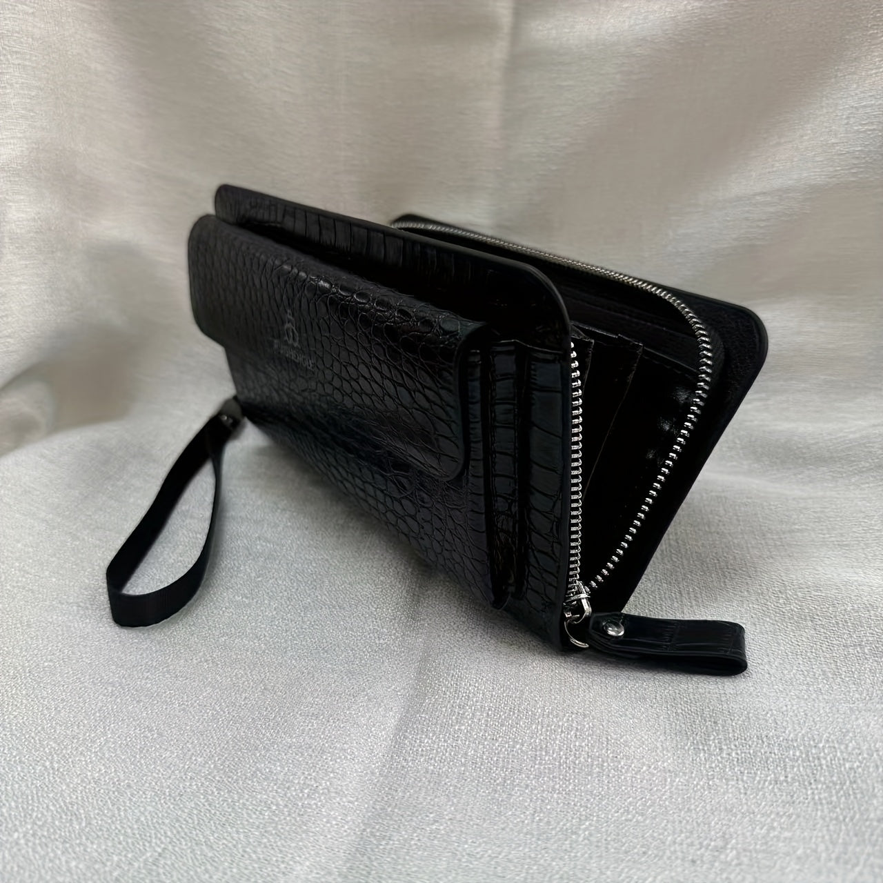 Beschrijving: Verhoog je zakelijke uitstraling met deze elegante PU lederen koppeling, perfect voor het stijlvol organiseren van je benodigdheden. Het ruime interieur en de meerdere compartimenten zorgen ervoor dat alles, van je kaarten tot je telefoon, een eigen plekje heeft. Gemaakt voor de veeleisende gentleman, straalt deze koppeling verfijning en functionaliteit uit. Of je nu naar een vergadering gaat of een avondje uit, dit accessoire past moeiteloos bij elke outfit.