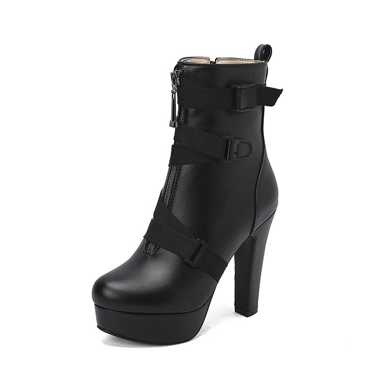 - Dikke hoge hak voor extra hoogte en zelfvertrouwen.